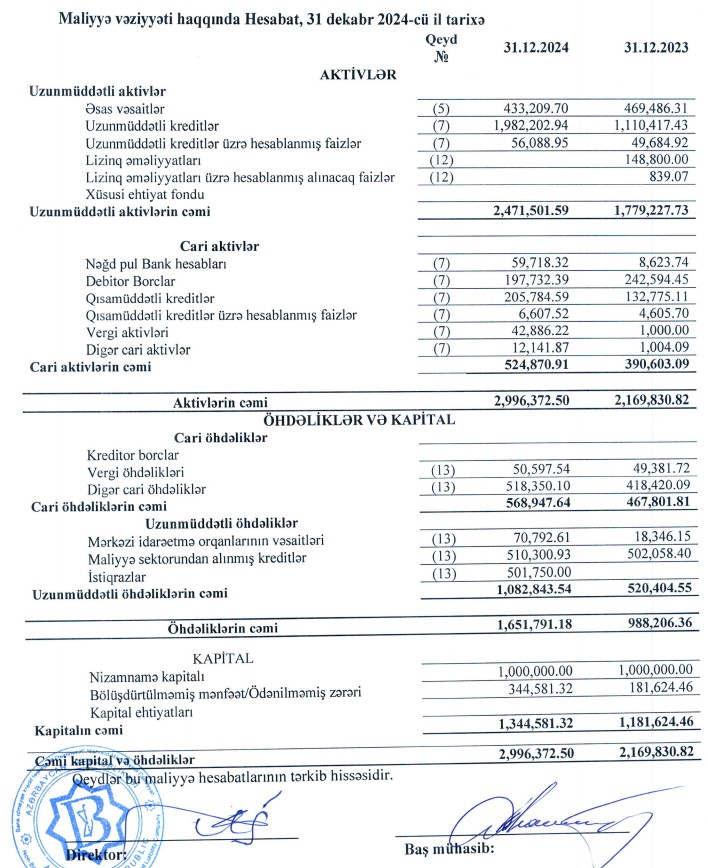 Ötən il "Effektinvest"in kredit portfeli 872 min manat və ya 78,5% artaraq 31 dekabr 2024-cü il tarixində 1 milyon 982 min manata çatıb.