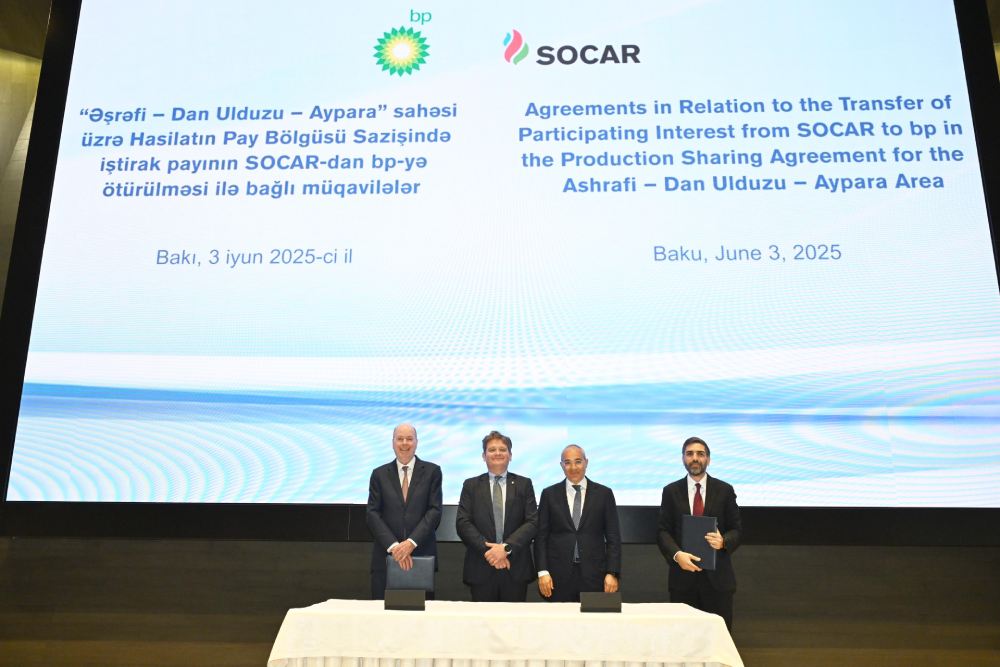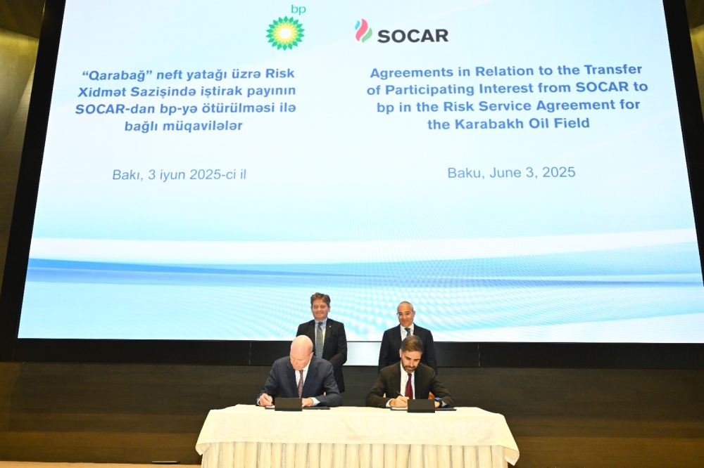 “Qarabağ”neft yatağının işlənməsi ilə bağlı Risk Xidməti Sazişi” və “Əşrəfi-Dan Ulduzu-Aypara” sahəsinin kəşfiyyatı, işlənməsi və hasilatın pay bölgüsü haqqında Saziş” üzrə iştirak paylarının satışına dair sənədlər imzalanıb3 iyun 2025-ci il tarixində “Xəzər dənizinin Azərbaycan sektorunda “Qarabağ” neft yatağının işlənməsi üzrə Risk Xidmət Sazişi” və “Əşrəfi-Dan Ulduzu-Aypara” sahəsinin kəşfiyyatı, işlənməsi və hasilatın pay bölgüsü Sazişi” üzrə iştirak paylarının satılması ilə əlaqədar sənədlər (o cümlədən “Farmout” Sazişi) imzalanıb.