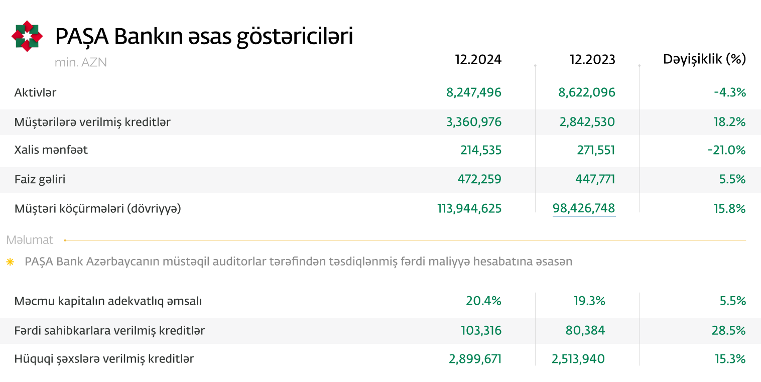 Qeyd edək ki, mətbuat konfransında rəqəmlər "PAŞA Bank Azərbaycan"ın müstəqil auditorlar tərəfindən təsdiqlənmiş fərdi maliyyə hesabatına əsasən təqdim edilib.