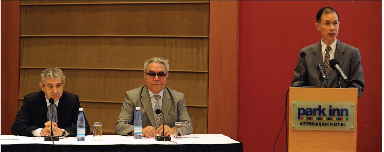 “Çin və Azərbaycan dost ölkələrdir. Onların arasındakı münasibətlərin inkişafı geniş perspektivə və çox böyük əməkdaşlıq potensialına malikdir. Çin dinc yanaşı yaşamanın beş prinsipi əsasında Azərbaycan ilə birgə səylərlə qarşılıqlı etibarlı daim möhkəmləndirmək, əməkdaşlıq üçün yeni sahələri və yolları fəal şəkildə axtarmaq istəyirik ki, Çin-Azərbaycan münasibətlərini iki ölkənin xalqlarının rifahı naminə yeni səviyyəyə yüksəltsin. Çin xalqı böyük xalqdır, Çin böyük ölkədir. Biz də böyük məmnunluq hissi ilə qeyd edirik ki, inqilabdan sonra ÇXR-in mövcud olduğu illər ərzində Çin xalqı dünya birliyində layiqli yer tutmuş, Çin Xalq Respublikası bütün dünyada böyük beynəlxalq nüfuz qazanmışdır və indi dünya miqyasında ictimai-siyasi inkişaf proseslərinə olduqca böyük təsir göstərir”.