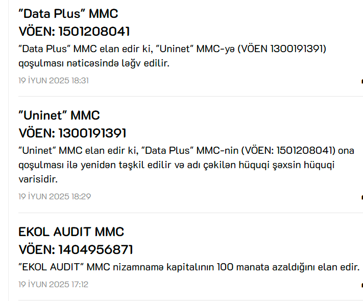 "Uninet" MMC də elan edib ki, "Data Plus" MMC-nin ona qoşulması ilə yenidən təşkil edilir və adı çəkilən hüquqi şəxsin hüquqi varisidir.