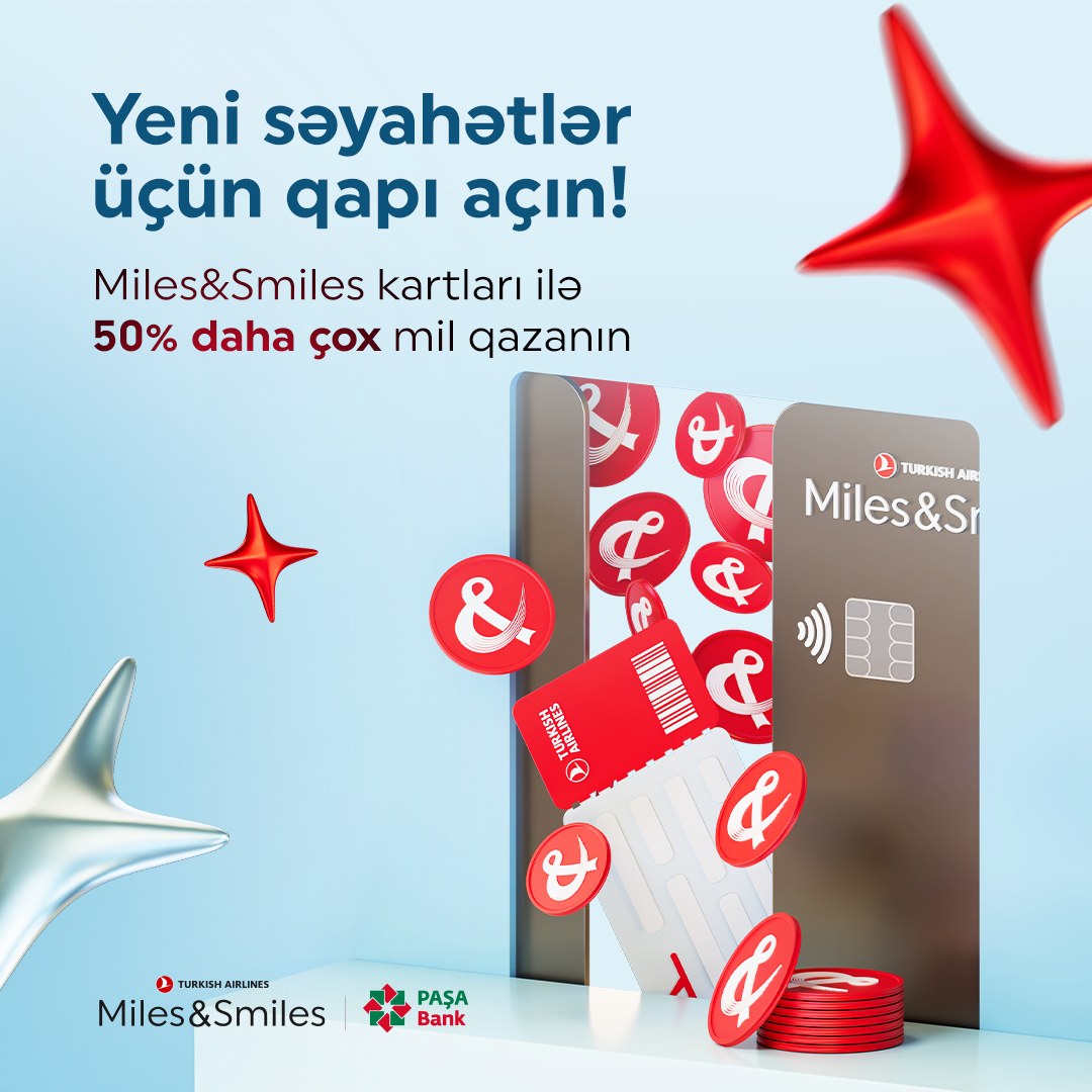 “Miles&Smiles PAŞA Bank” kartları – səyahət azadlığını və üstünlükləri bir araya gətirir. "PAŞA Bank" tərəfindən təqdim olunan “Miles&Smiles Platinum”, “Miles&Smiles Black” və “Miles&Smiles Elite” kart sahibləri nağdsız ödənişlərdən millər toplayaraq onları müxtəlif imtiyazlara çevirə bilərlər. Qazandıqları millərlə “Türk Hava Yolları” və “Star Alliance” üzvü olan digər hava yollarında aviabiletlər sifariş etmək, ekonom sinfindən biznes sinfinə yüksəliş etmək, əlavə baqaj haqqı, oturacaq seçimi kimi üstünlüklərdən faydalanmaq və shopandmiles.com platformasında alış-veriş etmək mümkündür. Kartın əsas fərqləndirici xüsusiyyətlərindən biri – 3,000-dək “Xoş gəldin milləri”nin təqdim olunmasıdır. Kart növündən asılı olaraq təklif olunan bu bonuslar “Miles&Smiles PAŞA Bank” kartlarını səyahətsevərlər üçün daha da cəlbedici edir. Kampaniya şərtləri haqqında daha ətraflı məlumat əldə etmək üçün linkə keçid edin.