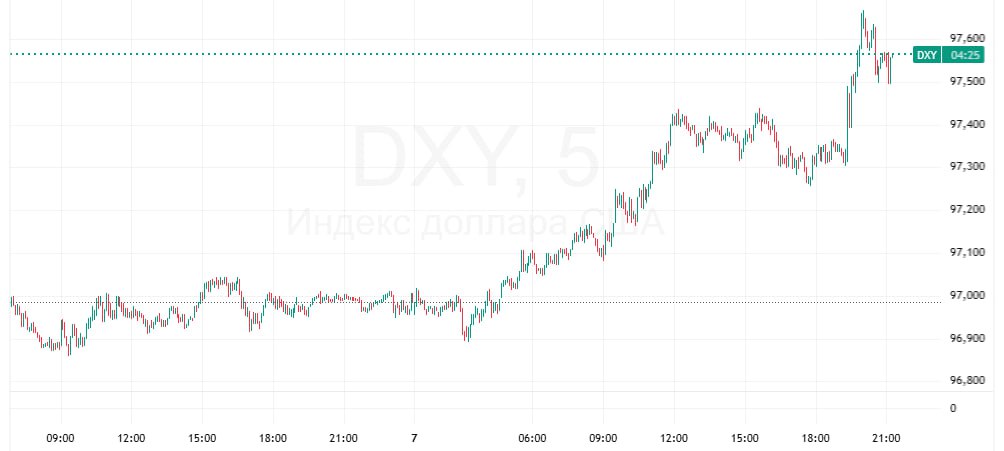 Dollar indeksi (DXY) bazar ertəsi, iyulun 7-də keçirilən ticarətdə 0,6% artaraq 97,5 bəndi görüb. Bakı vaxtı ilə saat 09:20-də İndeks 97,35 bənd təşkil edib.