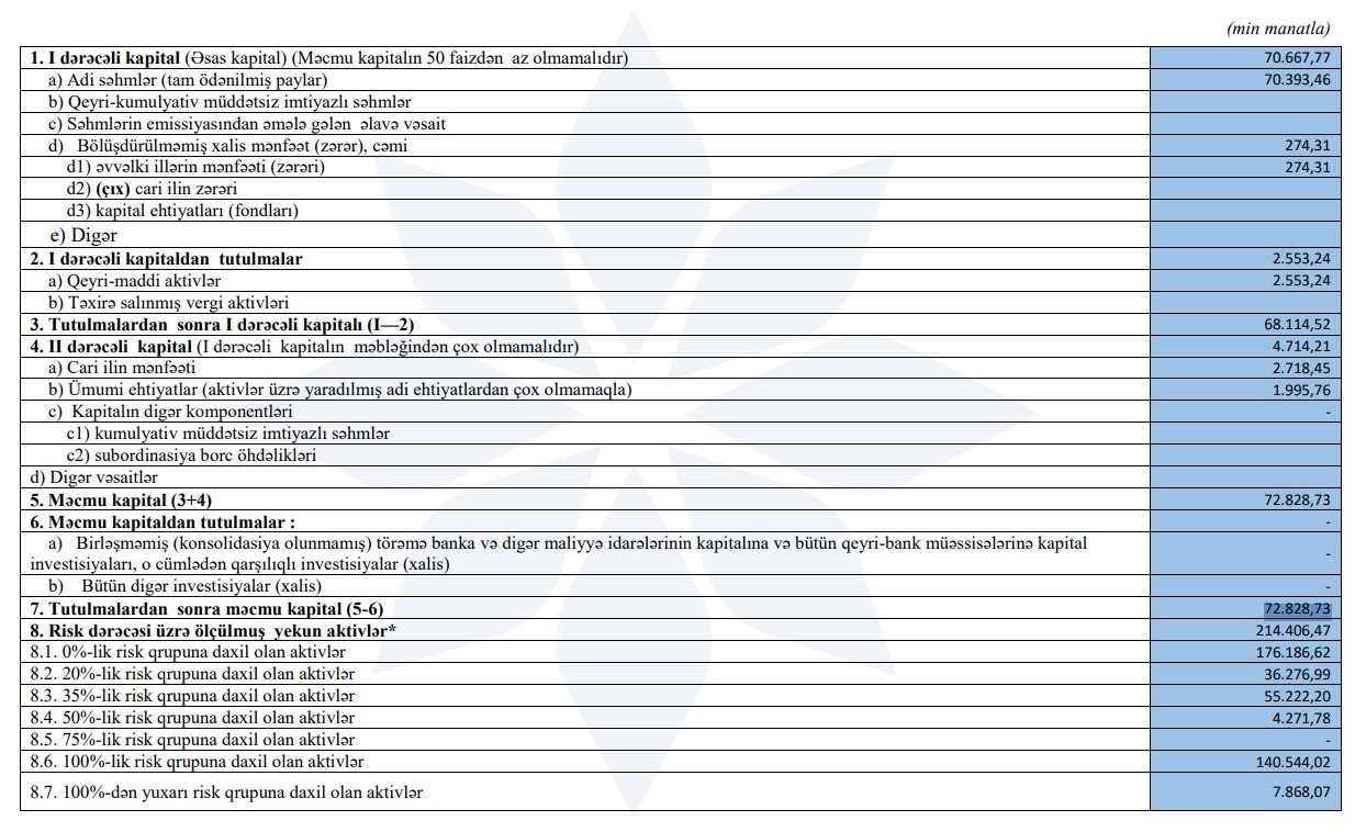 30 iyun 2025-ci il tarixində “AFB Bank” 72 milyon 829 min manat məcmu kapitala malik olub.
