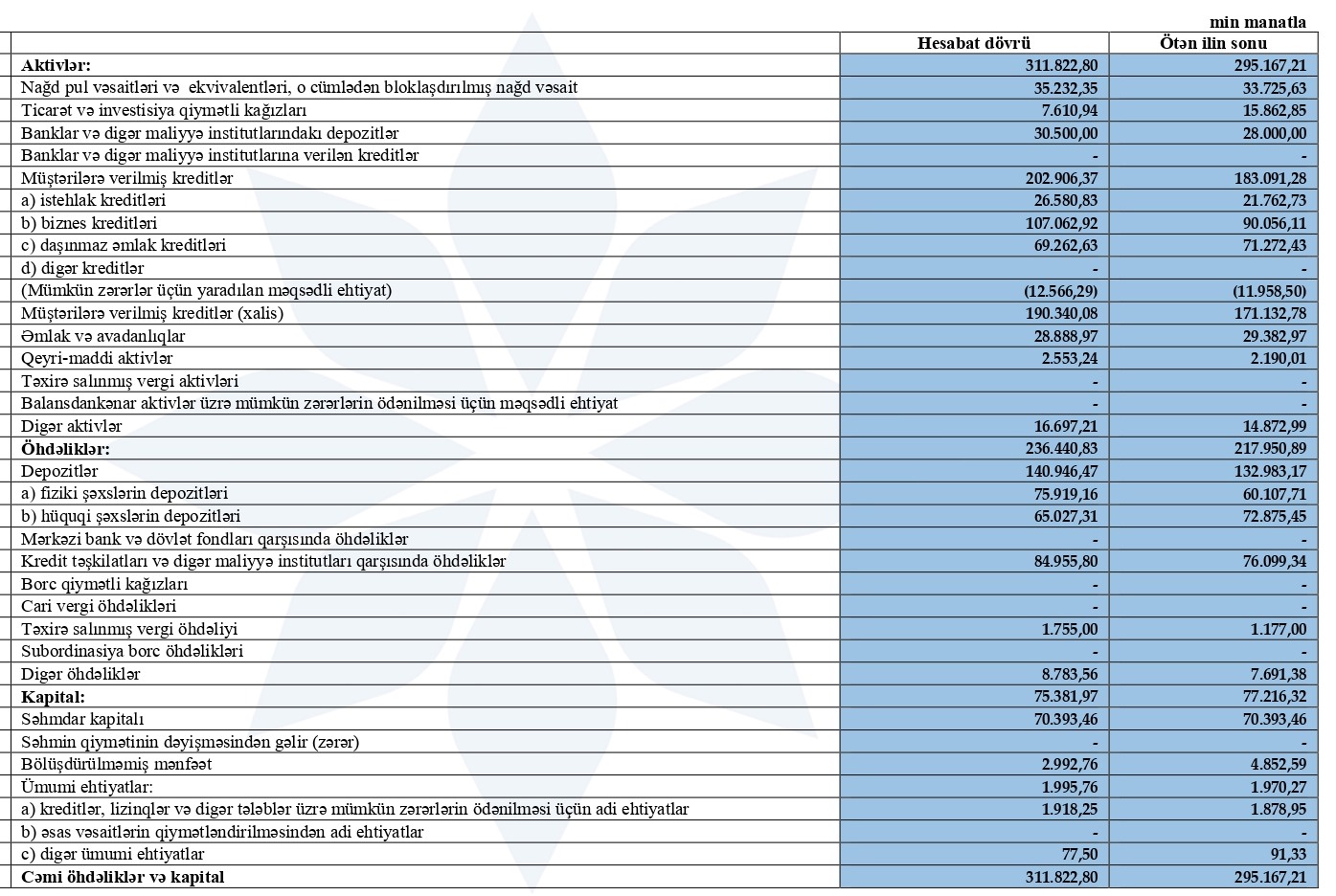 “AFB Bank”ın cəmi aktivləri 2024-cü ilin sonu ilə müqayisədə 16 milyon 656 min manat və ya 5,6% artaraq 30 iyun 2025-ci il tarixində 311 milyon 823 manata çatıb. Bankın kredit portfeli isə 19 milyon 815 min manat və ya 10,8% artaraq 202 milyon 906 min manata yüksəlib.