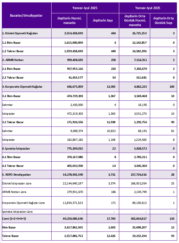2024-cü ilin yanvar-iyul dövründə (7 ayda) Azərbaycanın kapital bazarında əqdlərin cəmi həcmi 23 milyard 827 milyon 201 min manat təşkil etmişdi.
