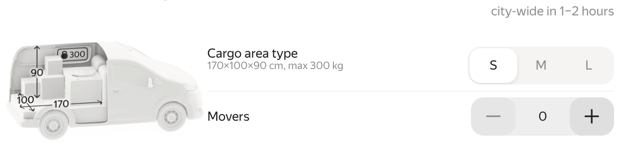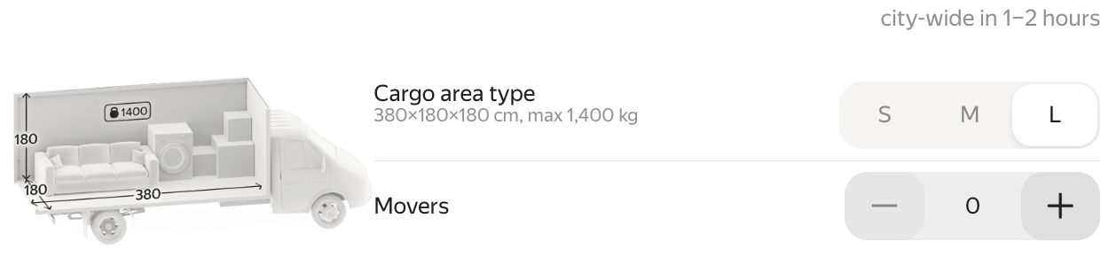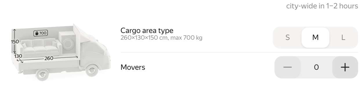 Yük - 1400 kiloqrama qədər ağır yüklər üçün. Böyük ölçülü göndərmələr üçün 3 ölçü (S, M və L) mövcuddur.