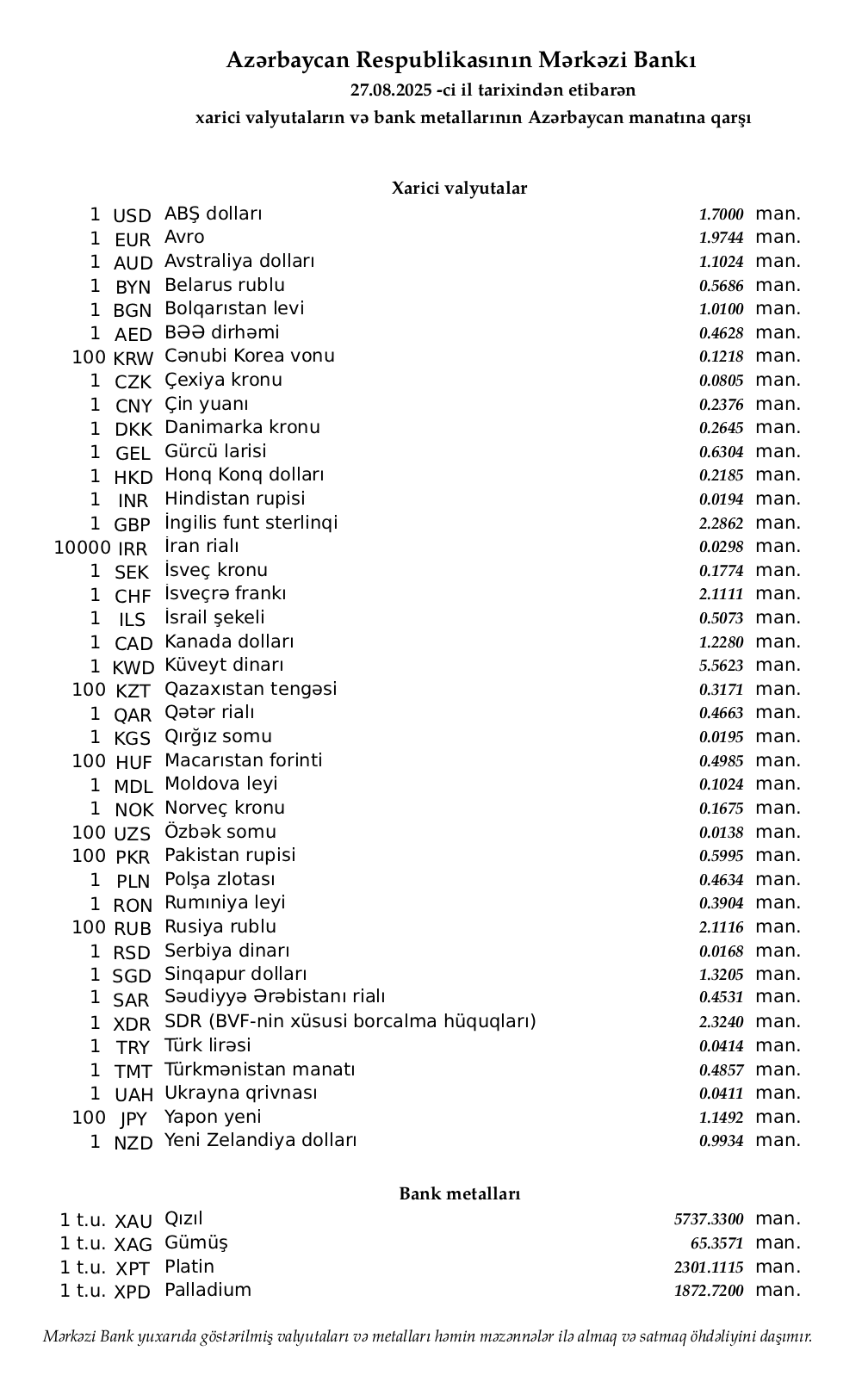 Dolların sabah üçün rəsmi məzənnəsi müəyyən olunub