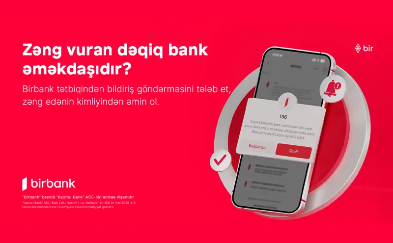 Artıq müştərilər bank tərəfindən gələn zəngin həqiqətən də banka aid olub olmadığını yoxlaya biləcəklər. Belə ki, müştəriyə bank adından zəng gəldiyi halda o, zəng edən şəxsdən Birbank tətbiqinə bildiriş göndərilməsini tələb edə bilər.