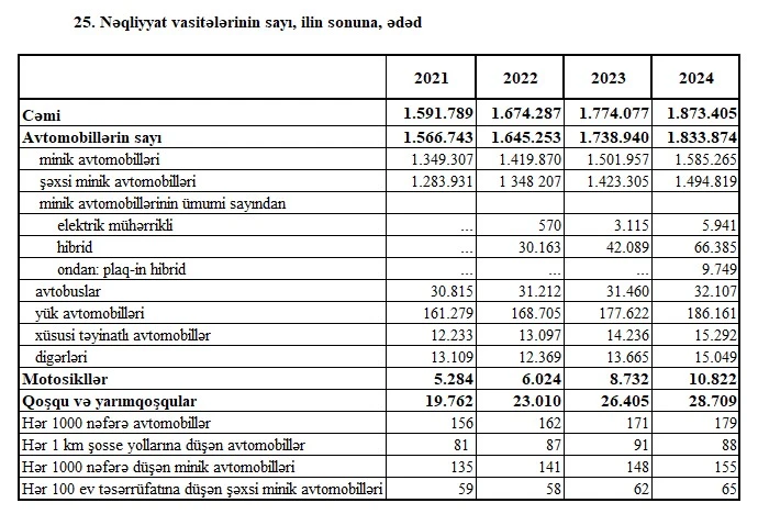 2022-2024-cü illər ərzində (3 il ərzində) Azərbaycanda motosikllərin sayı 2 dəfədən çox artaraq 2024-cü ilin sonunda 11 min ədədə yaxınlaşıb. 2021-ci ilin sonunda Azərbaycanda 5 min 284 ədəd motosikl var idi.