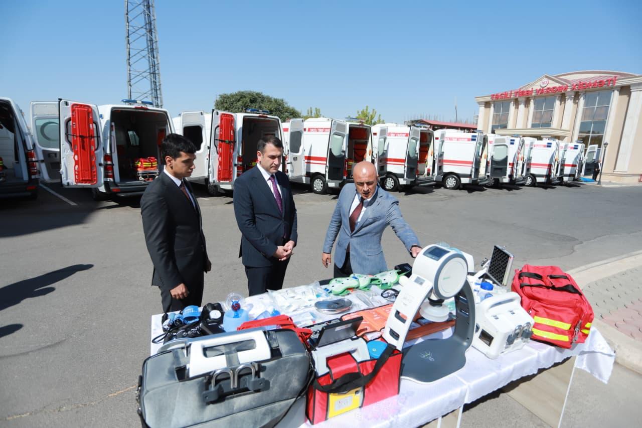 Yeni avadanlıqlar və zəruri tibbi ləvazimatların alınması üçün dövlə büdcəsindən ayrılmış vəsait hesabına ümumilikdə 22 adda avadanlıq və ləvazimat təmin edilmişdir. Alınan avadanlıqlar arasında süni tənəffüs cihazları, portativ aspiratorlar, ambulans üçün portativ aspiratorlar, baş üçün immobilizasiya yastıqları, boyunluqlar, pnevmatik şinalar dəsti, səyyar təzyiq ölçən cihazlar, stasionar təzyiq ölçən, tam təchizatlı təcili tibbi yardım çantaları, yanıq dəstləri, təcili doğum dəstləri, torakal drenaj seti, diaqnostik dəst, defibrilyatorlar və digər zəruri tibbi ləvazimatlar yer alır.