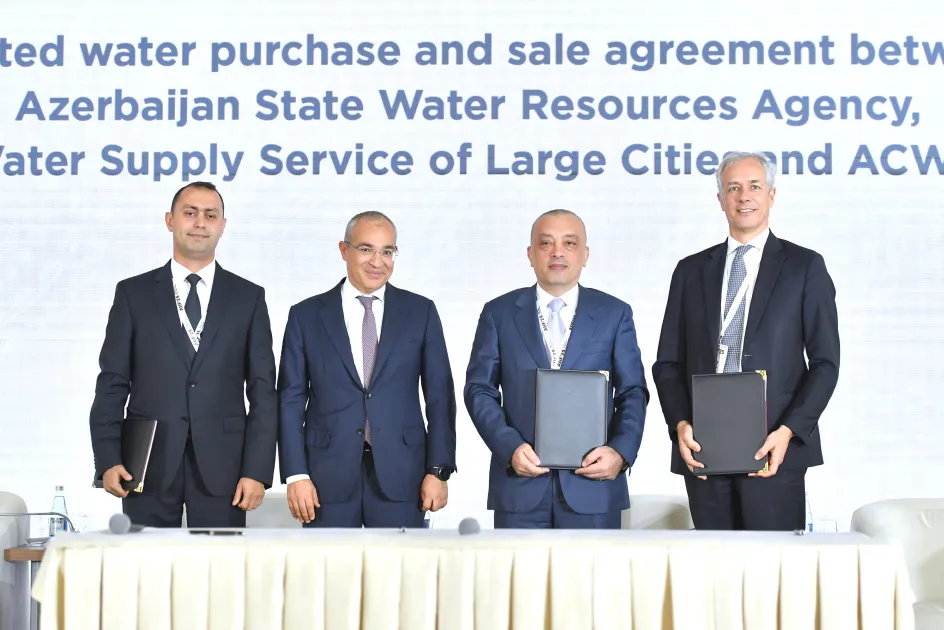 Təmizlənmiş suyun alqı-satqısı üzrə Su Satınalma Müqaviləsi - sənədi “İri Şəhərlərin Birləşmiş Su Təchizatı Xidməti” Publik Hüquqi Şəxsin İdarə Heyətinin sədri Tahir Xəlilov və Marco Arçelli imzalayıblar.