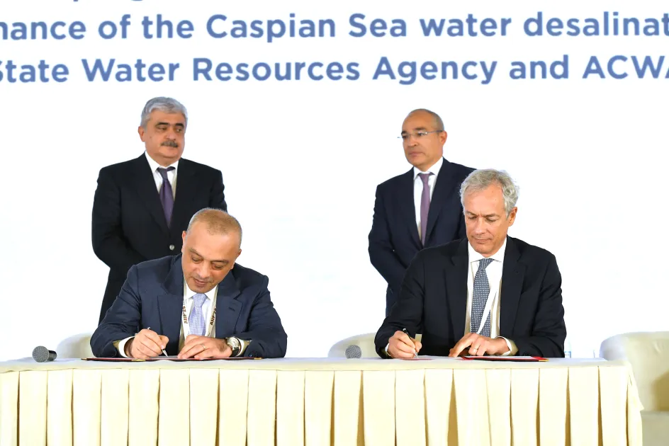 Xəzər dənizi suyunun duzsuzlaşdırılması zavodunun layihələndirilməsi, tikintisi, maliyyələşdirilməsi, istismarına dair Dövlət-Özəl Tərəfdaşlığı Müqaviləsi - sənədi Azərbaycan Dövlət Su Ehtiyatları Agentliyinin sədri Zaur Mikayılov və Səudiyyə Ərəbistanının “ACWA Power” şirkətinin baş icraçı direktoru Marco Arçelli imzalayıblar.