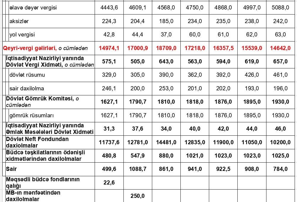 Qeyri-vergi gəlirləri 2025-də pikə çatdıqdan sonra aşağı düşəcək - Vergi gəlirləriı üzrə kəskin artım nəzərdə tutulur