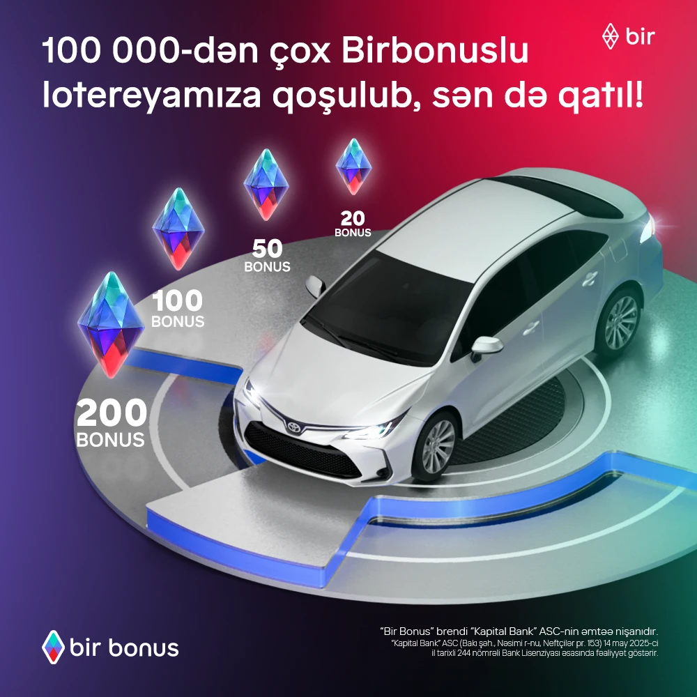 (®) Bir ekosistemin elan etdiyi Bir Bonus lotereyasına artıq minlərlə iştirakçı qoşulub. Bu lotereyada həm bonus qazananlar, həm də xərcləyənlər iştirak edirlər. Artıq 100 000 nəfər Birbonuslu Toyota Corolla avtomobili və yüzlərlə bonus qazanmağa daha yaxındır.