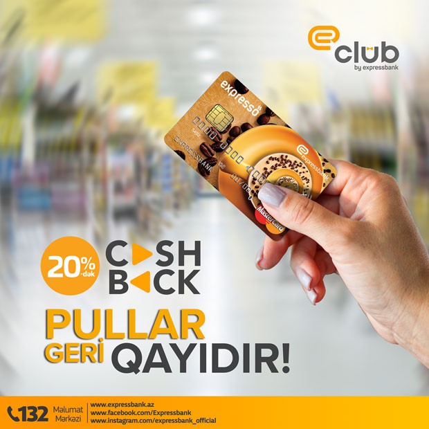 Expressbank müştəriləri daha şanslıdır. Çünki, “Xərclərinizi gəlirə çevirin” şüarı altında təqdim olunan “ExpressClub” layihəsi çərçivəsində, “Expressbank”ın bütün kart sahibləri ölkədaxili POS-terminallar vasitəsilə alış-veriş edərkən, xərclədikləri məbləğin bir hissəsini karta geri alırlar (“cashback”).