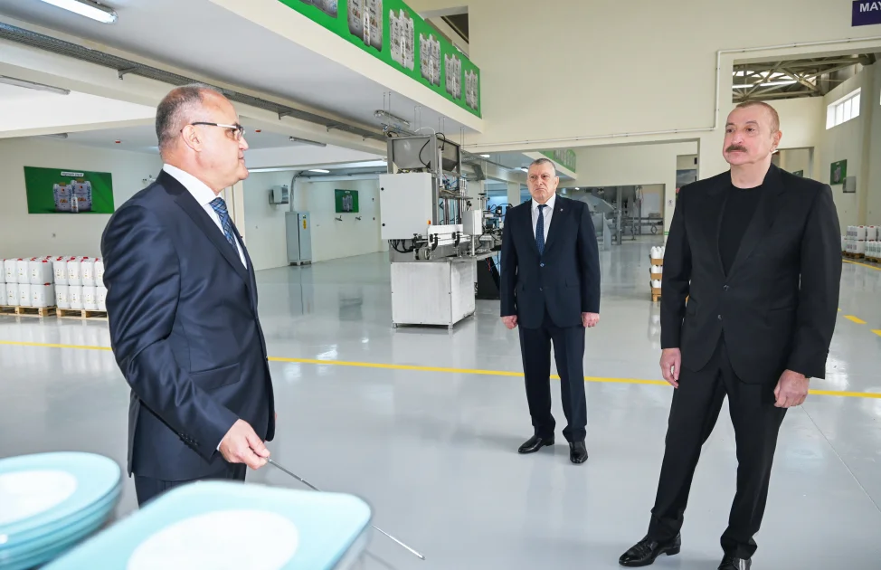 İlham Əliyev Sabirabadda - aqrokimyəvi vasitələrin istehsalı müəssisəsinin fəaliyyəti ilə tanış olub