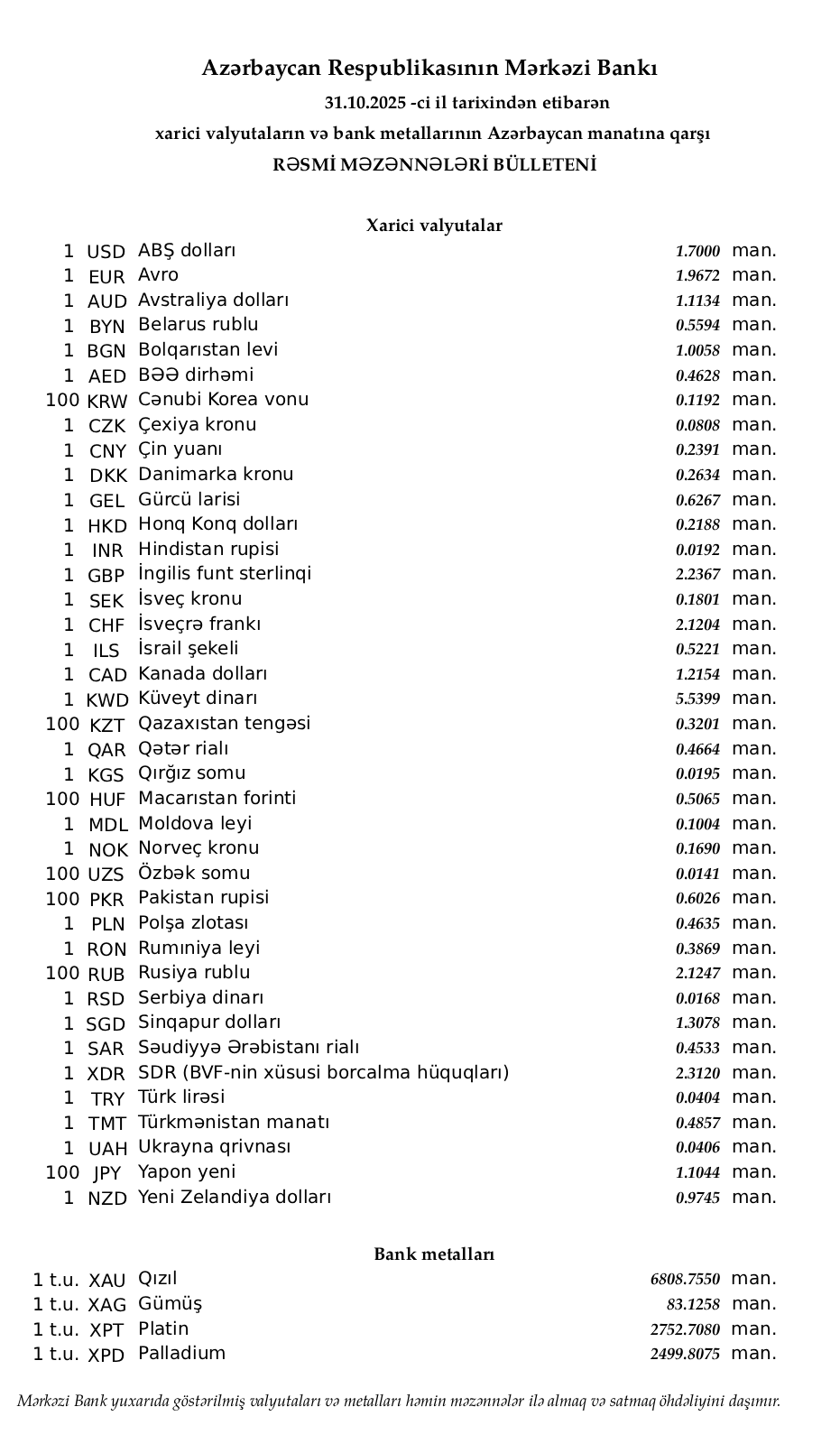 31.10.2025 tarixindən etibarən