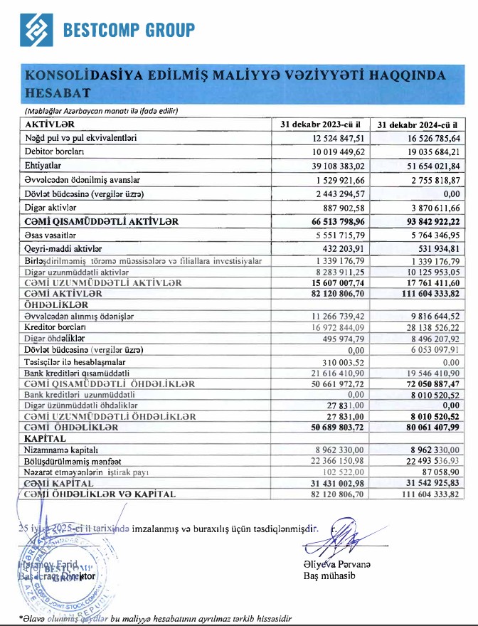 Marja.az xəbər verir ki, 2023-cü ildə "Bestcomp Group"un satışdan gəlirləri (əsas əməliyyat gəlirləri) 2023-cü ildə 206 milyon 790 min manat ikən, 2024-cü ildə 194 milyon 28 min manat təşkil edib (12 milyon 762 min manat və ya 6,6% azalıb). Şirkətin digər gəlirləri isə 35 dəfədən çox artaraq 42 min manatdan 1 milyon 494 min manata qalxıb.
