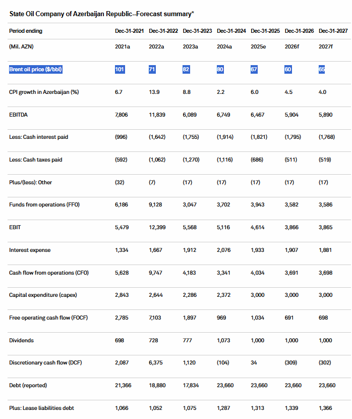 “S&P Global Ratings” Azərbaycanın Dövlət Neft Şirkəti SOCAR-ın 2025–2027-ci illəri əhatə edən maliyyə proqnozlarını dərc edib.