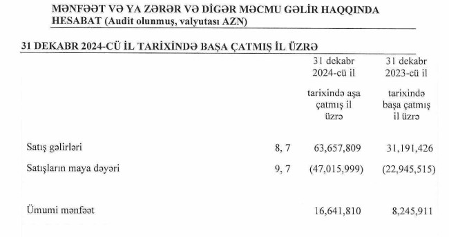 "Azərmaş Group" satışdan gəlirini və xalis qazancını açıqladı