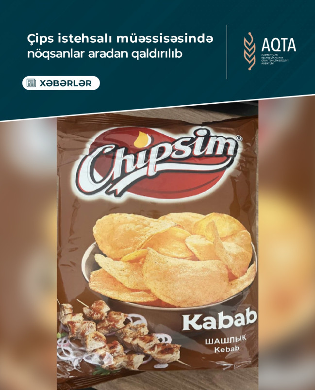 Qəbələ şəhəri, E.Kərimov küçəsi, ev 34 ünvanında yerləşən “Qəbələ Konserv Zavodu” MMC-yə məxsus çips istehsalı müəssisəsində Qida Təhlükəsizliyi Agentliyinin əməkdaşları tərəfindən keçirilən təkrar yoxlama zamanı “Çipsim” əmtəə nişanlı çips məhsullarından laborator müayinə üçün nümunələr götürülüb.