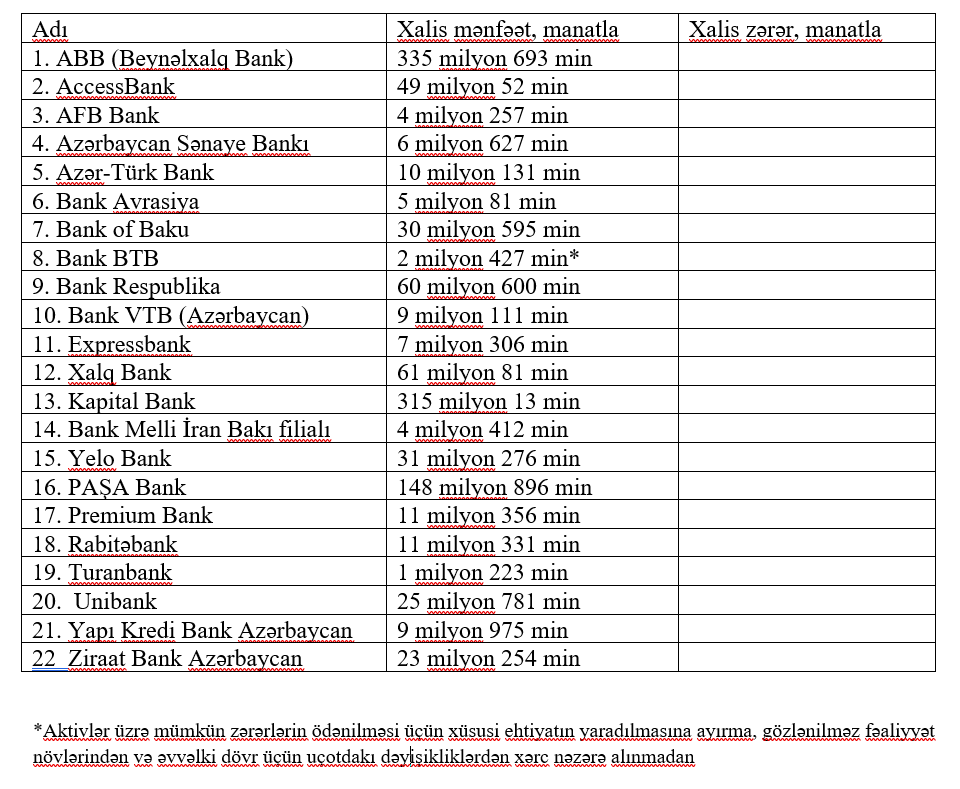22 bank mənfəət açıqladı - SİYAHI