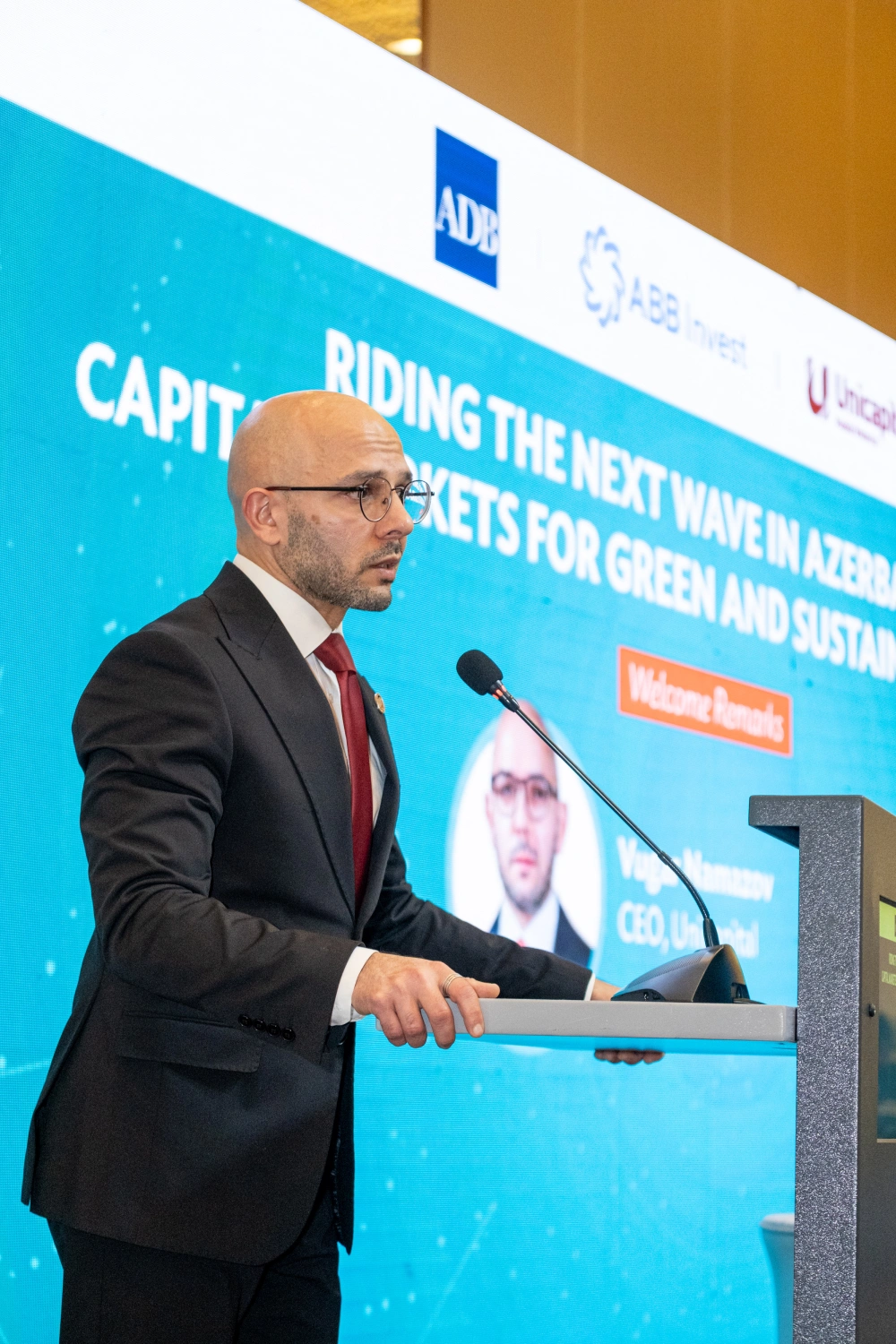 Qeyd edilib ki, AİB-in ölkə üzrə direktoru Sünniyə Durrani-Camal, Unicapital-ın baş direktoru Vüqar Namazov və ABB Invest-in baş direktoru Nadir Babazadə “Azərbaycan üçün İnkişafın Növbəti Mərhələsi: Yaşıl və Davamlı Artım Üçün Kapital Bazarları”  forumunda açılış nitqi ilə çıxış edib.