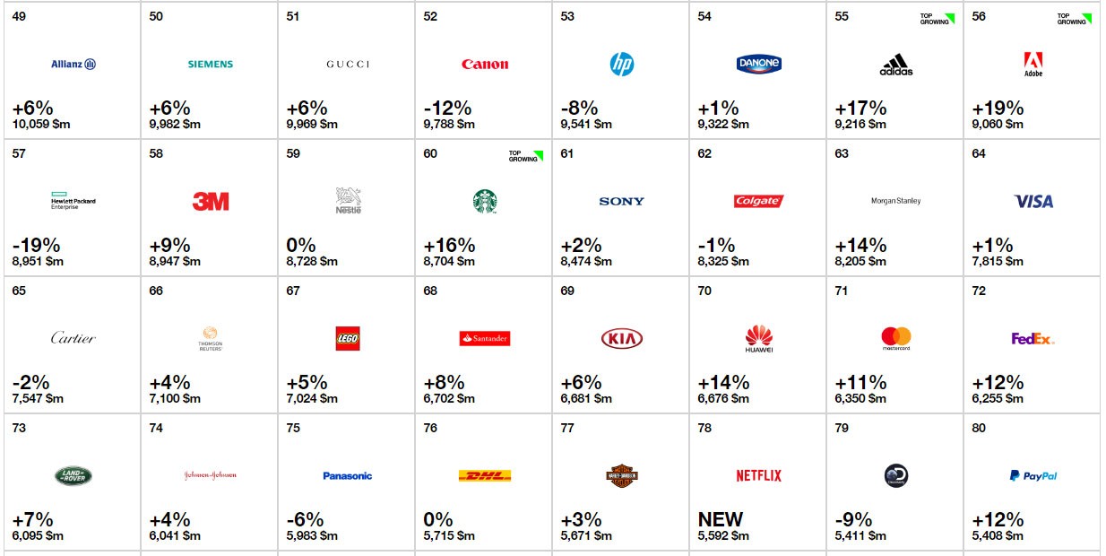 "Interbrand"ın ən dəyərli 100 marka siyahısı (http://interbrand.com/best-brands/best-global-brands/2017/ranking/).
