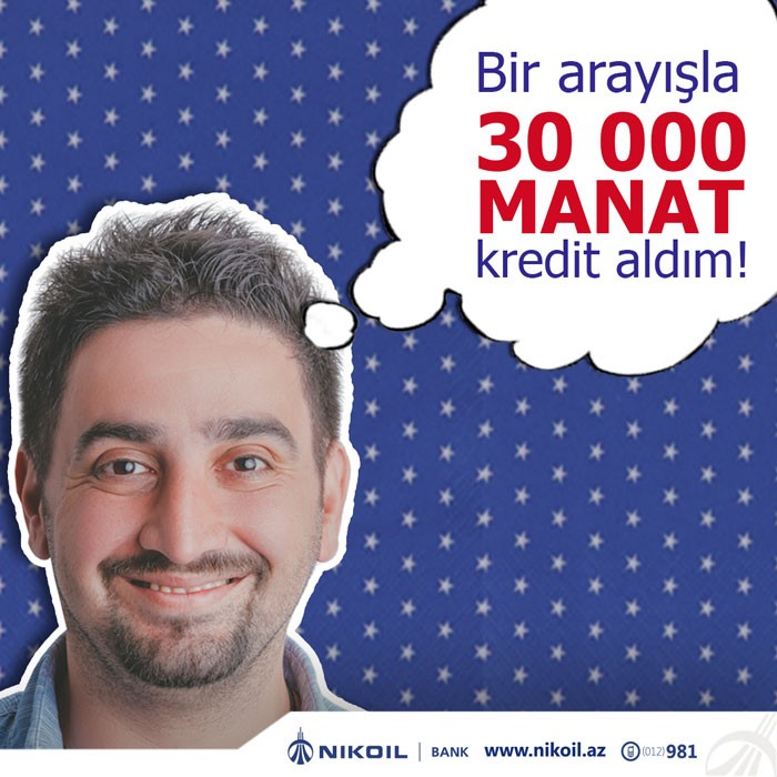Təcili nağd pula ehtiyacınız var? Yoxsa manatla nağd pula? Yaxud manatla və aşağı faizlə nağd pula?! Onda NIKOIL | Bank-a gəlin və sərfəli illik faiz dərəcəsi ilə 36 ayadək müddətə 30 000 manatadək kredit rəsmiləşdirin!