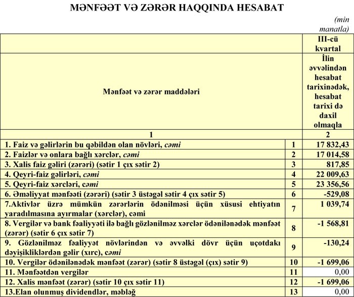 Son 3 ayda Bankda örəmə vaxtı keçmiş kreditlərin məbləği 143 milyon 851,7 min manatdan 146 milyon 351,1 min manata yüksəlib. Bu, Bankın müştərilərə verdiyi kreditlərin 50%-dən çoxdur.