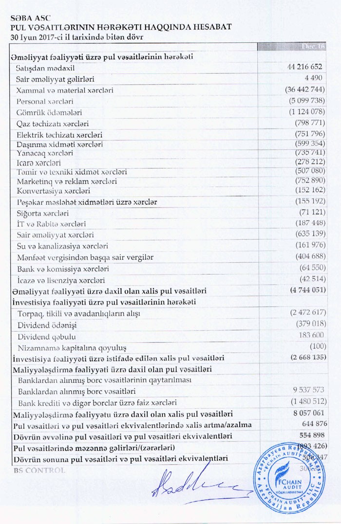 2016-cı ildə "Səba" ASC-nin cəmi xərcləri 51 milyon 557 min manat təşkil edib. Xərclər gəlirlərdən çox olduğundan ASC ötən ili 3 milyon 341 min manat zərər ilə bağlayıb. ASC-nin xərclərinin 36,4 miyon manatını material xərcləri təşkil edib.