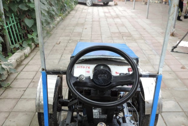On səkkiz yaşlı Xaçmaz sakini Həmdulla Xəlilov metal tullantılarından və müxtəlif məişət əşyalarının hissələrindən istifadə etməklə, mini traktor düzəldib.
