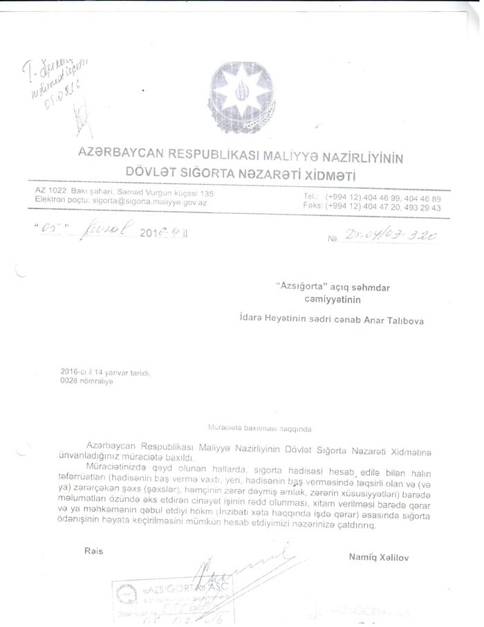 Yol Nəqliyyat Hadisəsi zamanı xəsarət və ölüm halında mütləq “Cinayət işi başlanır”. Bununla bağlı müxtəlif araşdırma və ekspertizalar keçirilir. Hətta ölüm halında zərərçəkənin hüquqi varsiləri onlara düşən sığorta kompensasiyasını unuda bilər. Bu bir mentalitet məsələsidir. Çünki hüzr zamanı varislərin sığorta şirkətinə gəlmələri və s. problemlər yaradır. Lakin bir müddət sonra hadisə ilə bağlı Polis öz işini yekunlaşdıraraq ya xəsarətin dərəcəsindən asılı olaraq “Cinayət işinin rədd olunması barədə qərar ” qəbul edir ya da işi məhkəməyə göndərir. Proses məhkəmədə davam etdirilir, sənədlər məhkəməyə göndərilir. Məhkəmədə ən sonda dövlətin adından “Hökm ” çıxarılır. Hökm isə dövlətin adından çıxarıldığı üçün bütün hüquqi aktlardan daha üstün sayılır.