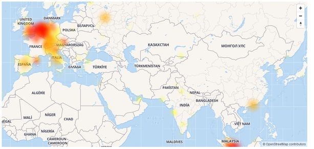 Avropanın böyük hissəsində görülən problemin böyüklüyü Downdetector adlı saytın məlumatları ilə görünə bilər.