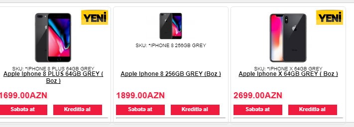 iPhone X modeli 2699 manata, iPhone 8 modeli 1469 manata, iPhone 8 Plus isə 1599 manata təklif olunur.