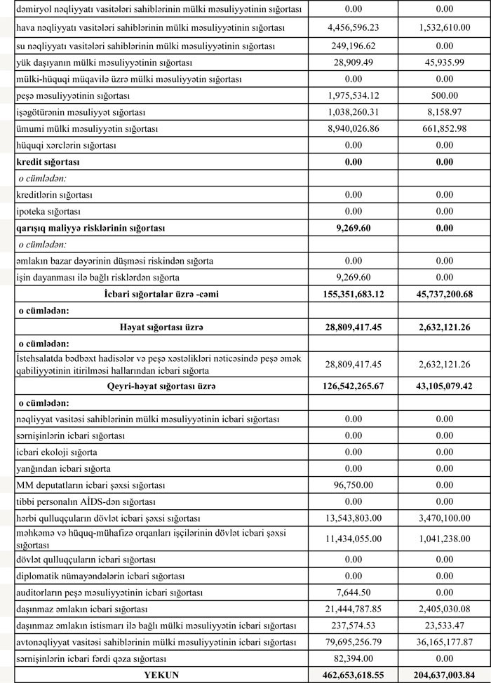 2017-ci ilin yanvar-oktyabr ayları ərzində Azərbaycanda fəaliyyət göstərən 21 sığorta şirkəti tərəfindən 462 milyon 653 min manat sığorta haqqı toplanmışdır.