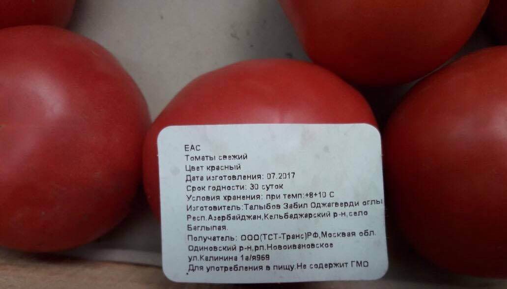 Pomidorlar barədə məlumat verilən kağız etiketdə məhsulun Azərbaycan Respublikası, Kəlbəcərdə tam təbii üsulla yetişdirildiyi qeyd olunmuşdu. Əsas maraqlı məqam isə ondan ibarət idi ki, Kəlbəcər erməni işğalında olmasına baxmayaraq, pomidorların etiketində istehsalçısı kimi azərbaycanlı adı - Talıbov Zabil Ocaqverdi oğlu qeyd olunmuşdu.