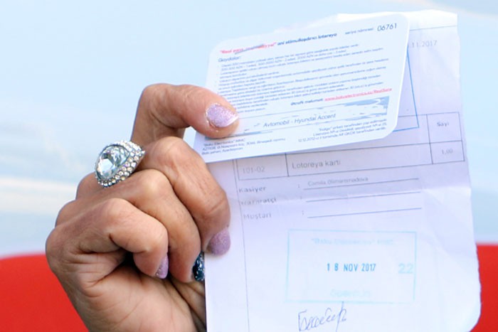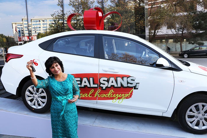 58 yaşlı Bakı sakini Kifayət Bəydəmirova cəmi 250 manatlıq mobil telefon alaraq Hyundai Accent avtomobili qazanıb.