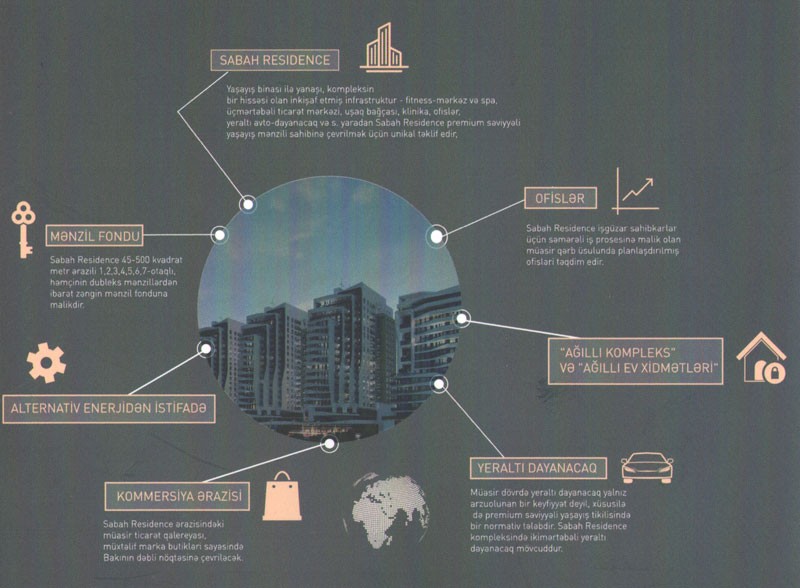 Şirkətin satış təmsilçisi Fatimə Ələsgərova “Marja”ya bildirdi ki, Bayıl qəsəbəsinin girişində, Dəniz Administrasiyasının yaxınlığında “Sabah Residence” kompleksinin tikintisi nəzərdə tutulub: