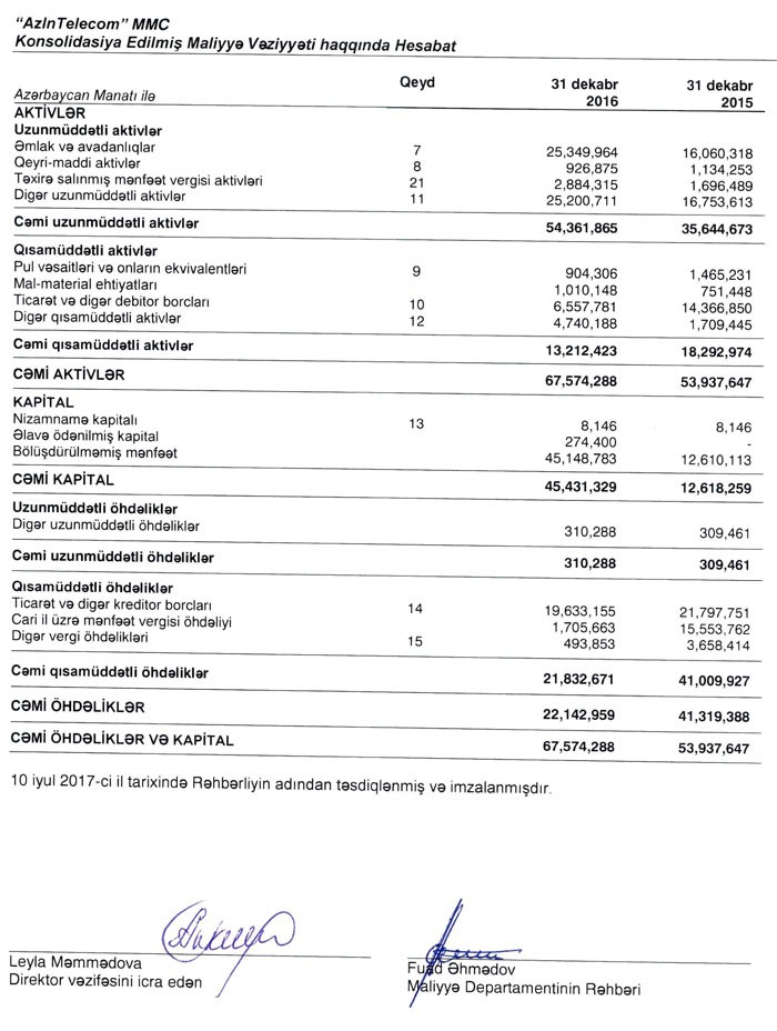 Nəqliyyat, Rabitə və İnformasiya Texnologiyaları Nazirliyinin nəzdində fəaliyyət göstərən “AzInTelecom” MMC 2016-cı ili 32 milyon 539 min manat xalis mənfəətlə başa vurub. Halbuki, şirkət 2015-ci ildə 12 milyon 698 min manat zərər açıqlamışdı.