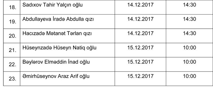 Attestasiyada iştirak edənlərin siyahısı əlavə olunur.