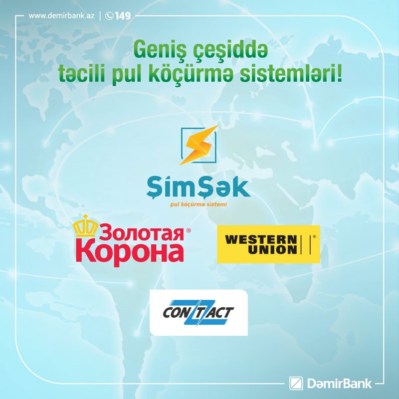 Qeyd edilib ki, hazırda DəmirBank-da Zolotaya Korona, Western Union, Contact kimi beynəlxalq pul köçürmələri ilə yanaşı, Bankın öz ölkədaxili Şimşək pul köçürmə sistemi də fəaliyyət göstərir.