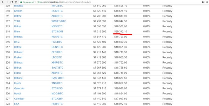 "Marja" xəbər verir ki, "Bitso" bazrında Bitcoin-in qiyməti 20 342 dolları, "Bithumb" bazarında 19 635 dolları görüb. Bir çox birjada Bitcoin-in qiyməti 19 min dollardan, bir neçə birjada isə 20 min dollardan yüksəkdir. Qiymətlər haqda daha ətraflı: https://coinmarketcap.com/currencies/bitcoin/#markets.
