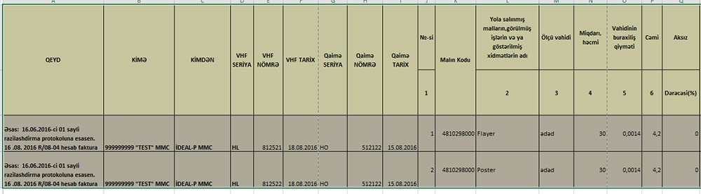 3. Elektron qaimə və Elektron VHF-ların tərkibində (içərisində) olan məlumatların “.csv” və ya “.xls” formatlarına export edilməsi.