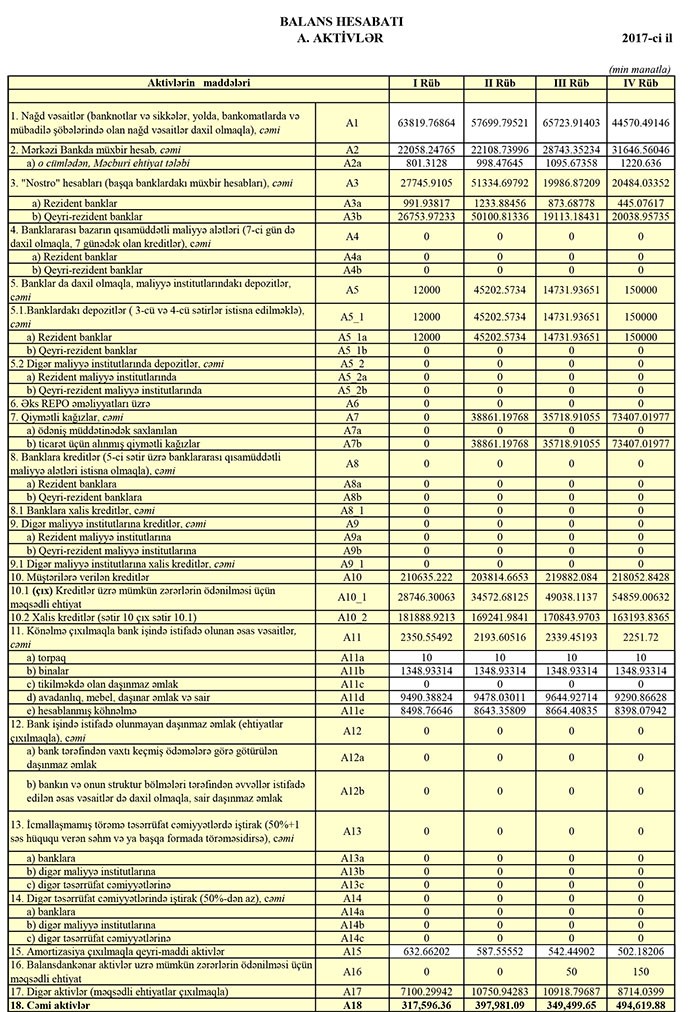 Bu il yanvarın 1-nə “AFB Bank”ın aktivləri 494 milyon 62 min manat olub ki, bu da illik müqayisədə 64,6% çoxdur. Bunun 163 milyon 194 milyon manatı müştərilərə verilmiş xalis kreditlərdir. 2017-ci ildə Bankın kredit portfeli 17,6% kiçilib.