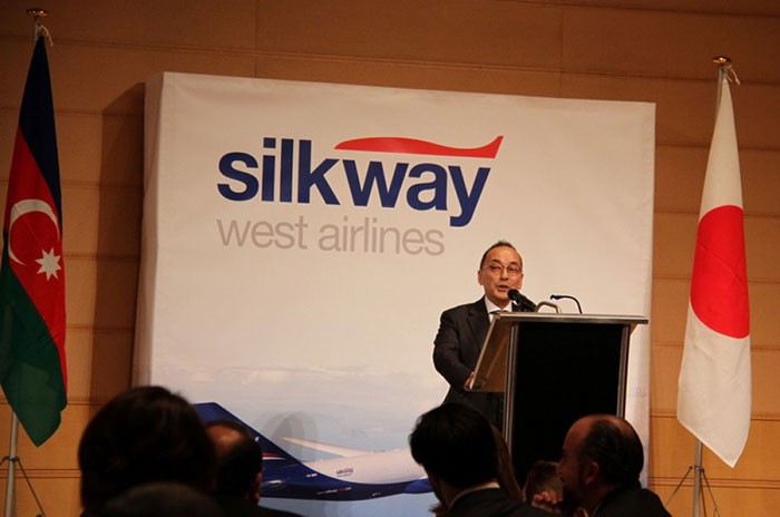 Mərasimdə çıxış edən “Silk Way Group”un prezidenti Zaur Axundov bildirib ki, 14 ədəd “Boeing 747-8” və “Boeing 747-400” təyyarələrindən ibarət hava donanmasına malik şirkət bu sahədə Avropanın tanınmış qurumlarından biridir. 2016-cı il yanvarın 24-də Bakı ilə Yaponiyanın Komatsu aeroportu arasında ilk müntəzəm karqo reysinin açıldığını xatırladan Z.Axundov həmin reysin ətraf region ilə əlaqələrin qurulmasında mühüm rol oynadığını vurğulayıb. Qeyd edib ki, məhz həmin reysdən sonra Azərbaycan ilə Yaponiya arasında birbaşa müntəzəm daşımalar həyata keçirilib. Bu, müstəqil Azərbaycanın nəqliyyat əlaqələrinin inkişafında mühüm əhəmiyyətə malik hadisə olmaqla yanaşı, eyni zamanda iki dost ölkə arasında iqtisadi əlaqələrin inkişafına mühüm töhvələr verib. Ötən dövrdə görülmüş işlərə toxunan Z.Axundov birgə layihələr arasında 2017-ci ilin oktyabrında Bakıda keçirilən “Japan Expo-2017” sərgisinin xüsusi əhəmiyyətə malik olduğunu qeyd edib. Bildirib ki, həmin sərginin bütün yükləri məhz “Silk Way West Airlines” şirkəti vasitəsilə Bakıya çatdırılıb. Yaponiyanın keyfiyyətilə seçilən məhsulları həm dövlət strukturları, həm də istehlakçılar tərəfindən yüksək qiymətləndirilib.