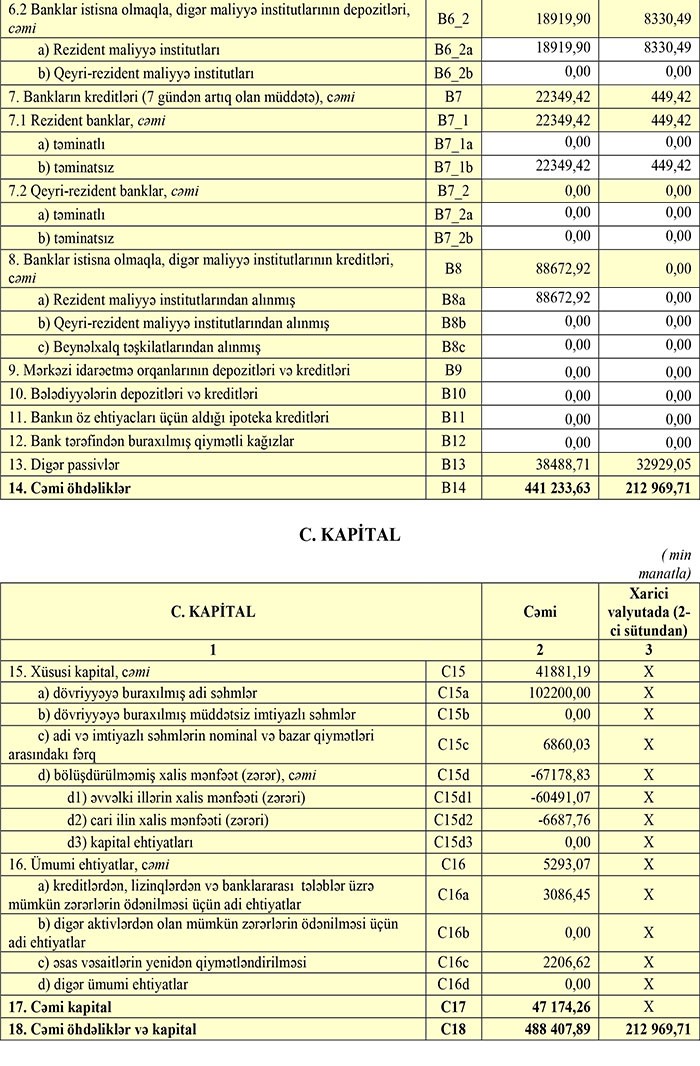 “AgBank”ın yığılmış cəmi zərəri 67 milyon 178 min manata qalxıb. Yığılmış zərər Bankın 102 milyon 200 min manatlıq nizamnamə kapitalının böyük hissəsini silib. Bankın xüsusi kapitalı 41 milyon 881 min manata, cəmi balans kapitalı isə 47 milyon 174 min manata düşüb.