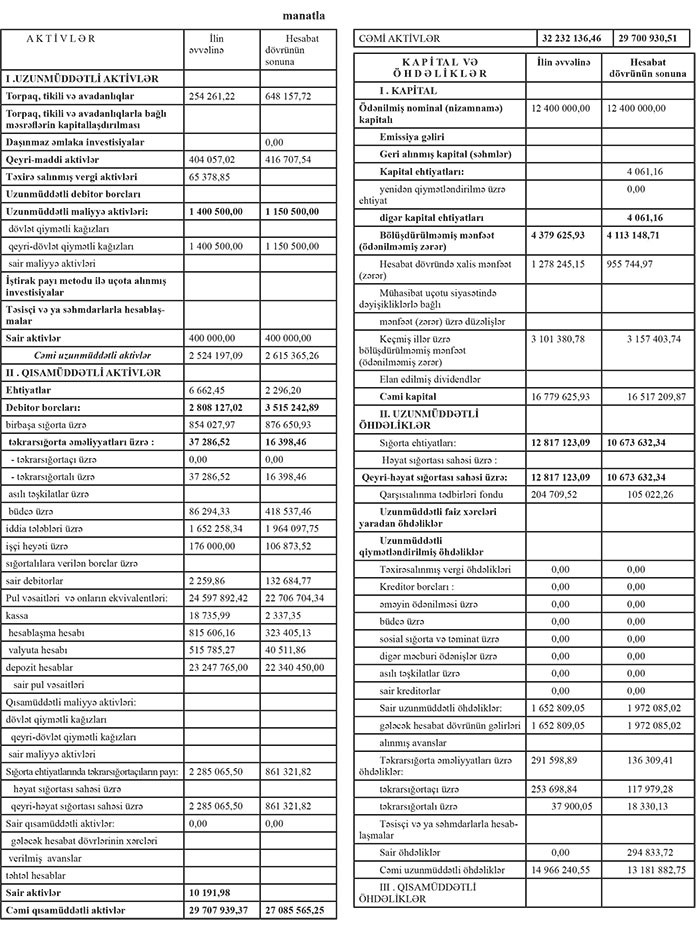 Ötən il şirkətin cəmi aktivləri 32 milyon 232 min manatdan 29 milyon 701 min manata düşüb.