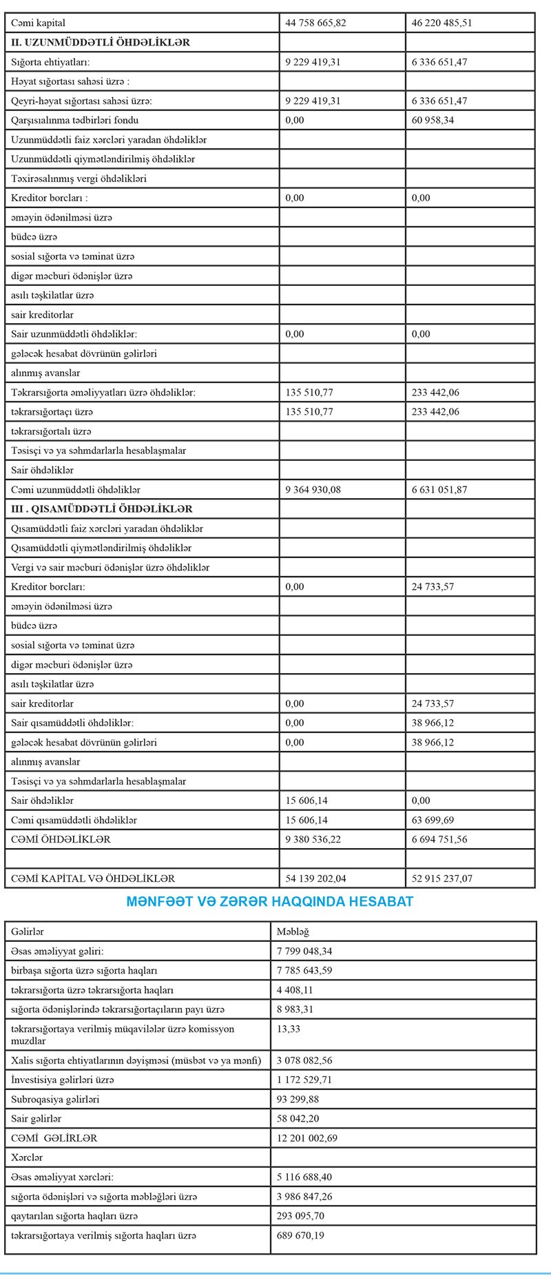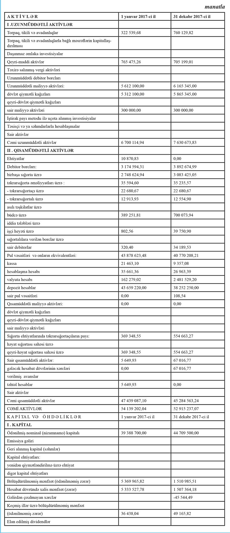 Cəmi aktivləri ötən ilin əvvəlindəki 54 milyon 139 min manatdan ilin sonunda 52 milyon 915 min manata düşüb.